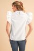 White Solid Color Scalloped Ruffle Sleeve Blouse