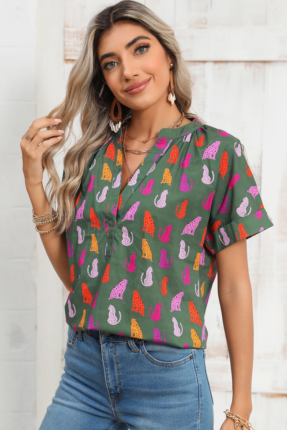 Blackish Green Cheetah Print Split V Neck Blouse Blackish Green Cheetah Print Split V Neck Blouse Blackish Green Cheetah Print Split V Neck Blouse Blackish Green Cheetah Print Split V Neck Blouse Blackish Green Cheetah Print Split V Neck Blouse Blackish Green Cheetah Print Split V Neck Blouse