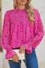 Rose Leopard Shirred Puff Sleeve Flowy Blouse