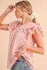Peach Blossom Button Neck Smocked Layered Ruffle Blouse
