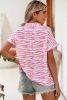 Rose Zebra Print V-Neck Roll Up Sleeve Blouse