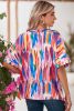 Multicolor Watercolor Abstract Print V Neck Blouse