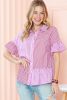 Pink Striped Patchwork Ruffle Button Up Blouse