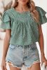 Laurel Green Spotted Print Pleated Ruffle Sleeve Blouse