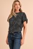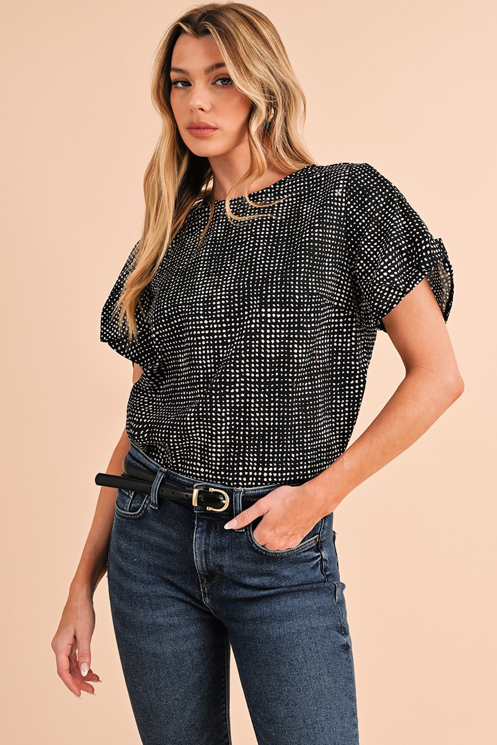 Home > Black Dotted Puff Sleeve Round Neck Blouse