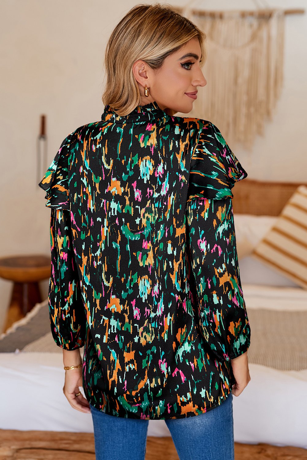 Multicolour Abstract Print 3/4 Puff Sleeve Ruffle Blouse