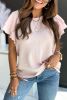 Pink Textured Tiered Ruffle Casual Short Sleeve Top