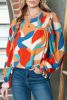 Multicolor Abstract Print Casual Puff Sleeve Blouse