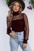 Red Sexy Sheer Dotty Puff Sleeve Ribbed Velvet Bodysuit