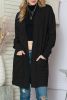 Home > Black Ribbed Knit Pocketed Open Front Long Cardigan
