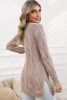 Apricot Ribbed Trim Hollow Knit Side Slits Cardigan