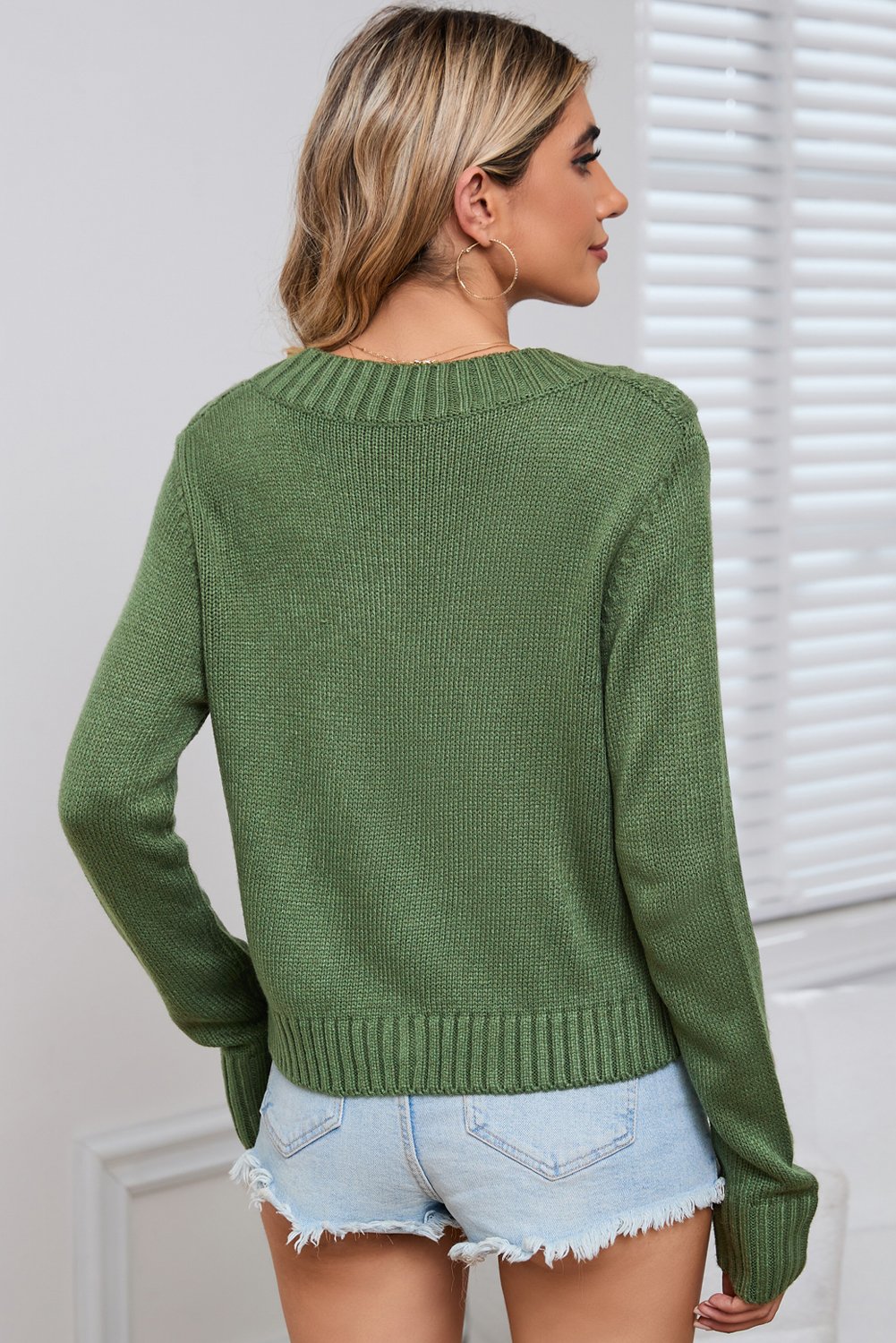 Green Pockets Buttons Textured Cropped Sweater Cardigan