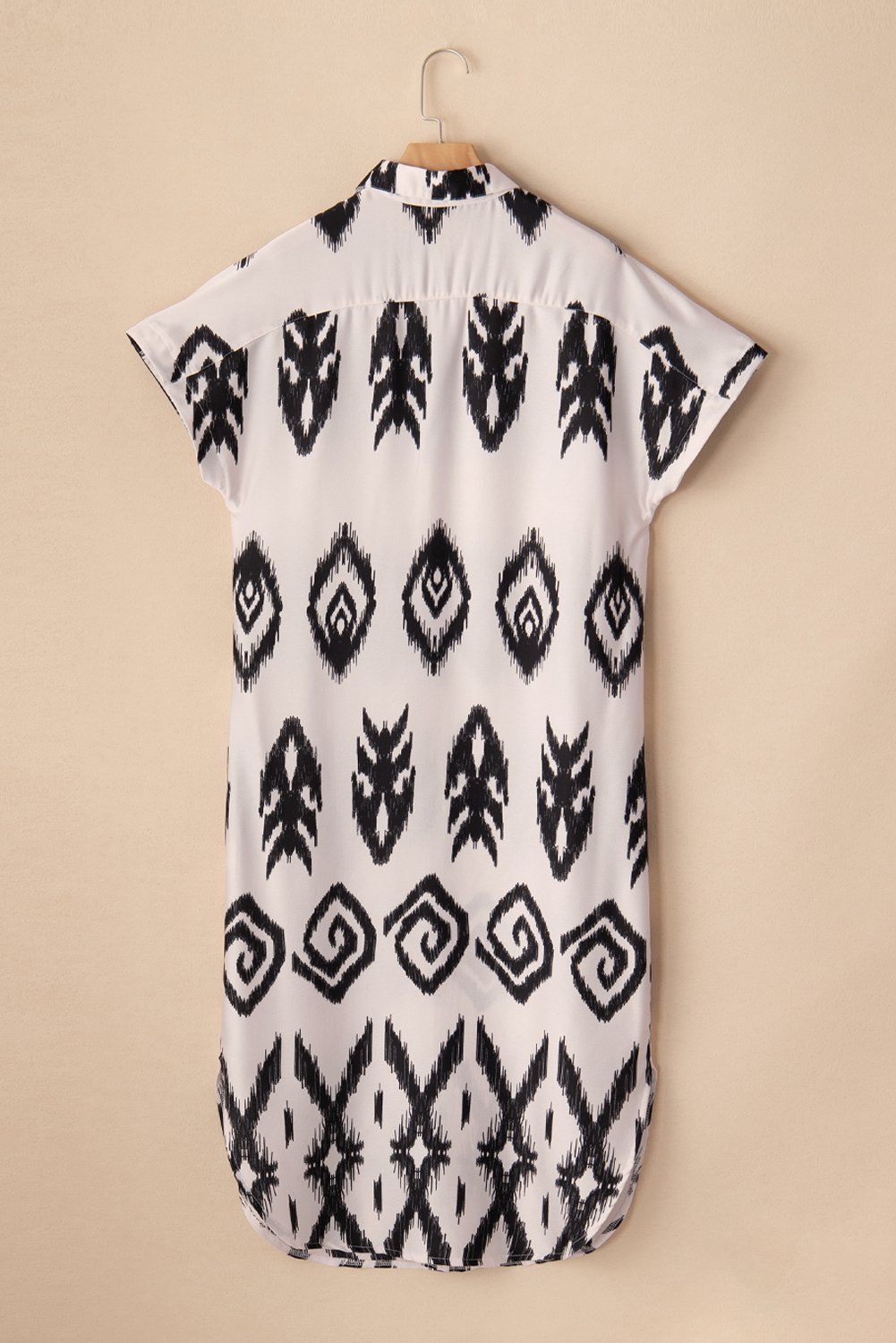 Effortlessly elegant, this cover up is a must-have for beach days or poolside lounging. The boho abstract print adds a touch of artistic flair to your ensemble, making you stand out in style. Featuring a trendy split design and button detailing, this cover-up offers a chic and modern look. Made from high-quality fabric, it provides a comfortable and breathable feel for all-day wear. Perfect for retailers looking to stock up on fashionable cover-ups, this item is available for wholesale purchase.