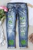 Sky Blue St Patricks Clover Graphic Patchwork Sequin Distressed Jeans Sky Blue St Patricks Clover Graphic Patchwork Sequin Distressed Jeans Sky Blue St Patricks Clover Graphic Patchwork Sequin Distressed Jeans