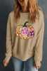 Khaki Halloween Floral Pumpkin Graphic Drop Shoulder Sweatshirt