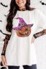 Home > White Halloween Sequined Pumpkin Crewneck Graphic Tee