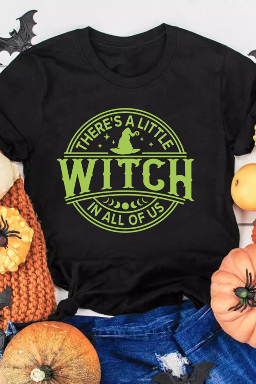 Embrace the dark side with the WITCH Crew Neck Halloween Graphic T-Shirt, featuring a striking black color that adds a mysterious touch to your outfit. Enjoy the comfort of a short-sleeve design, perfect for daily wear during the Halloween season or all year round for a touch of witchy style. The round neck offers a classic and versatile look that pairs effortlessly with jeans, skirts, or leggings, making it a versatile addition to your wardrobe. Show off your Halloween spirit with the eye-catching graphic design that adds a touch of magic and mystery to your ensemble. Ideal for retail stores or online shops looking to stock up on spooky yet stylish Halloween apparel, this t-shirt is available for wholesale orders.