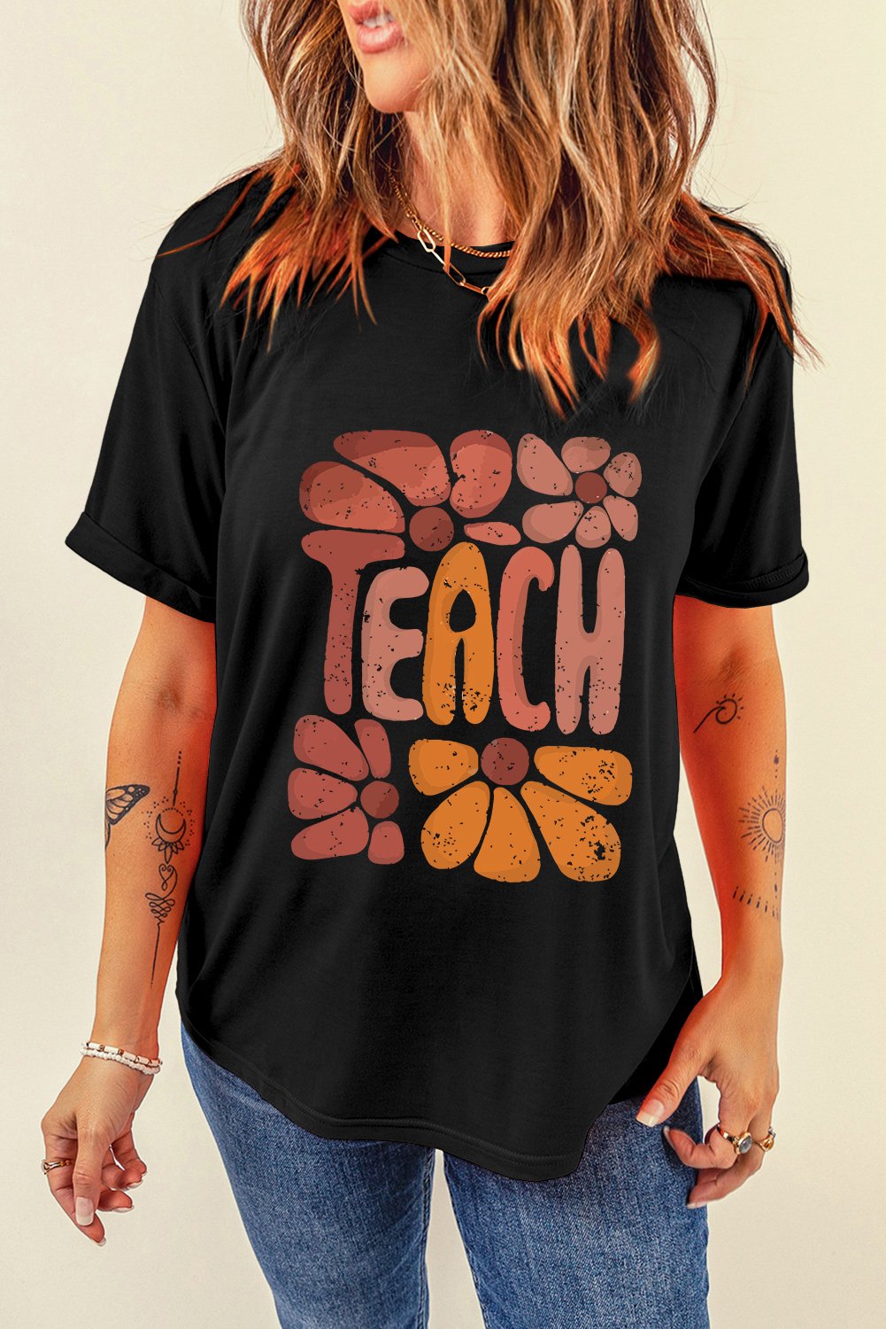 Stay comfortable in the short sleeves and round neck design, providing a relaxed fit for all-day wear. Ideal for casual outings or lounging at home. Crafted with high-quality materials, this t-shirt ensures durability and comfort, making it a staple piece in your wardrobe. Whether you're running errands or meeting friends for coffee, this t-shirt offers a simple yet stylish option. Add the Black TEACH Crew Neck Casual T-Shirt to your collection for a timeless essential that can be dressed up or down.
