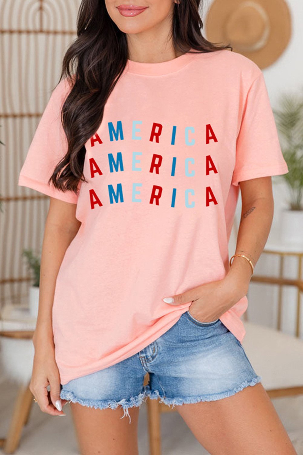 Home > Pink 4th July AMERICA Graphic Crewneck T Shirt