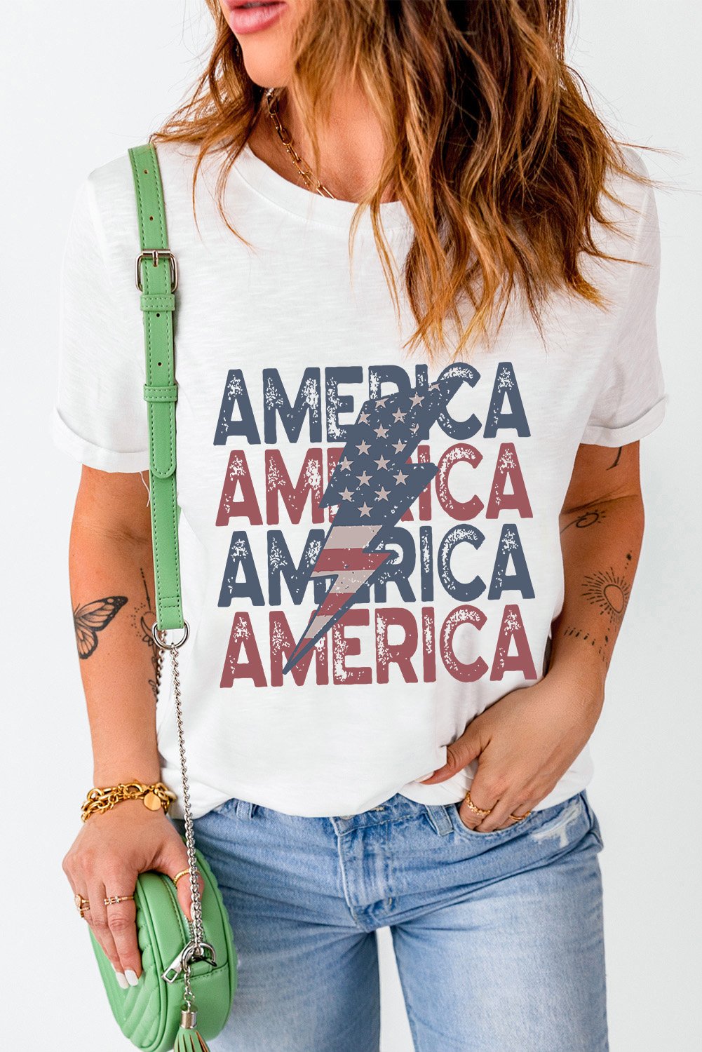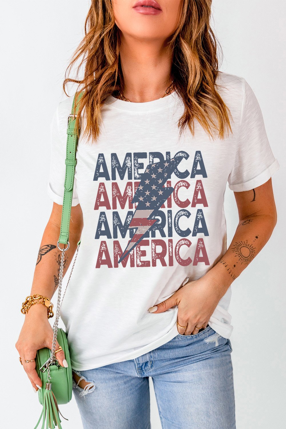 Home > White American Flag Strip & Star Lighting Graphic Tee
