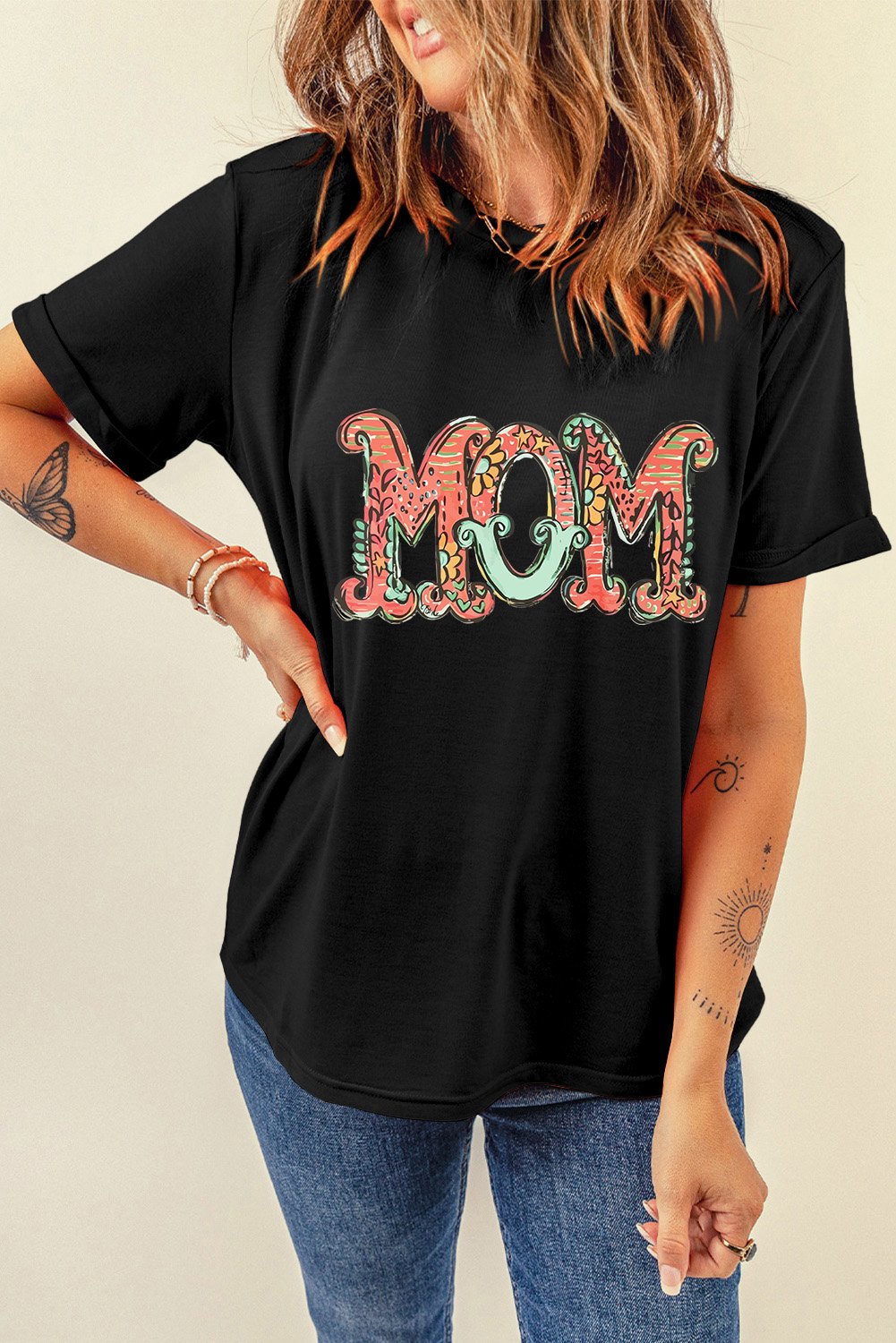 Home > Black Floral MOM Graphic Crew Neck T Shirt