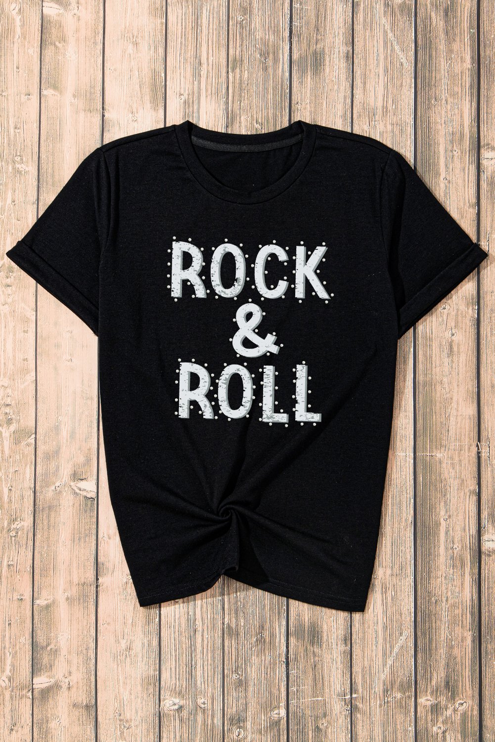 Black ROCK & ROLL Beaded Crew Neck Graphic Tee