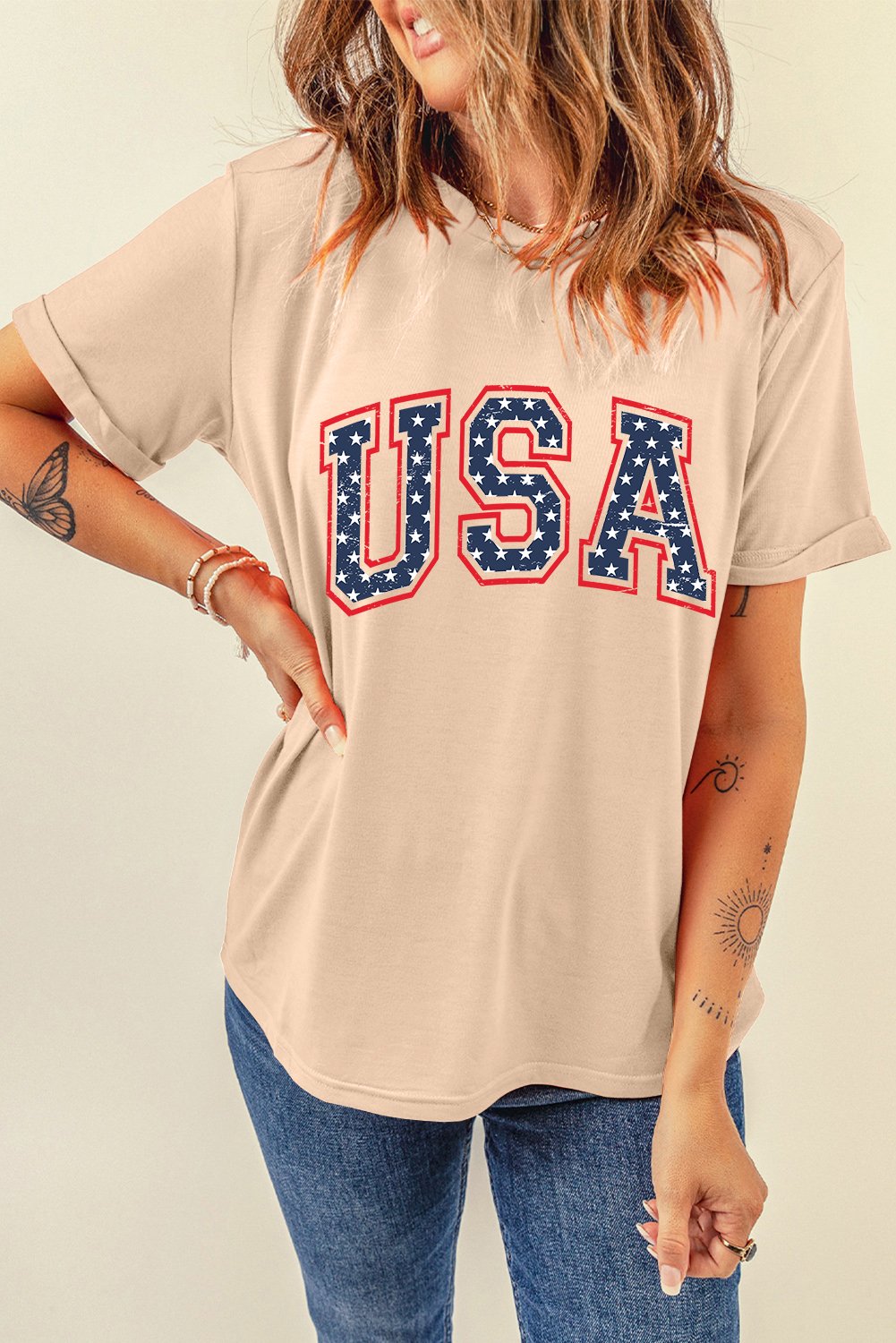 Home > Khaki Star USA Graphic Crewneck Roll Up Sleeve T Shirt