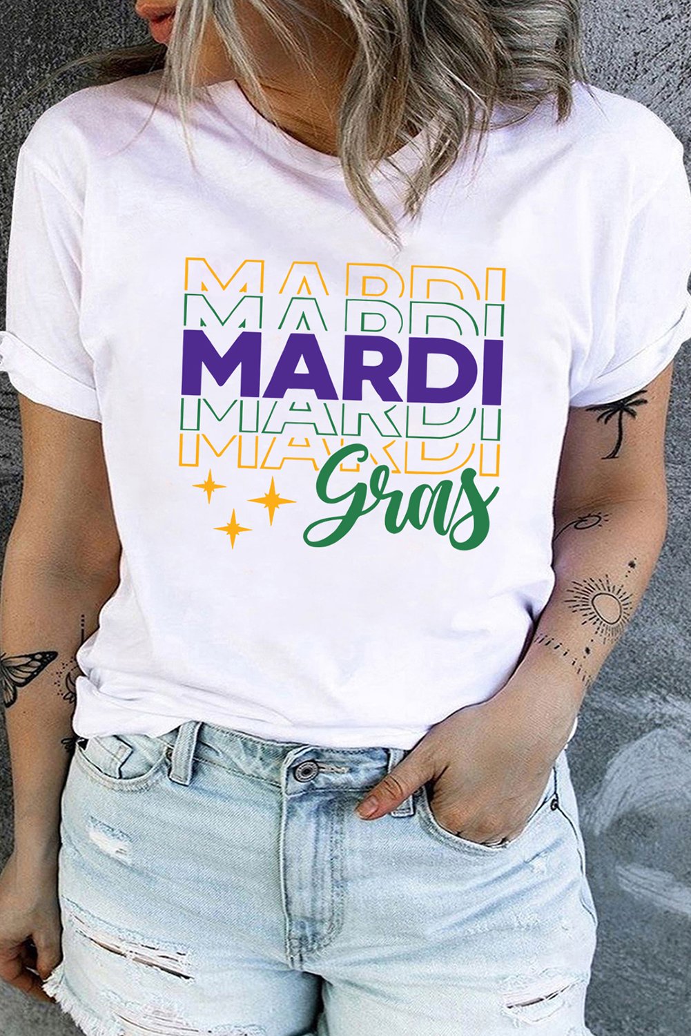White MARDI gras Printed Plus Size T-shirt White MARDI gras Printed Plus Size T-shirt