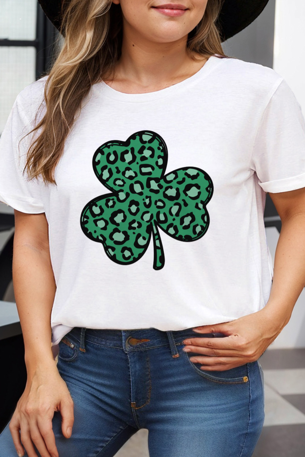 White St Patricks Day Leopard Clover Graphic Round Neck Tee White St Patricks Day Leopard Clover Graphic Round Neck Tee White St Patricks Day Leopard Clover Graphic Round Neck Tee White St Patricks Day Leopard Clover Graphic Round Neck Tee