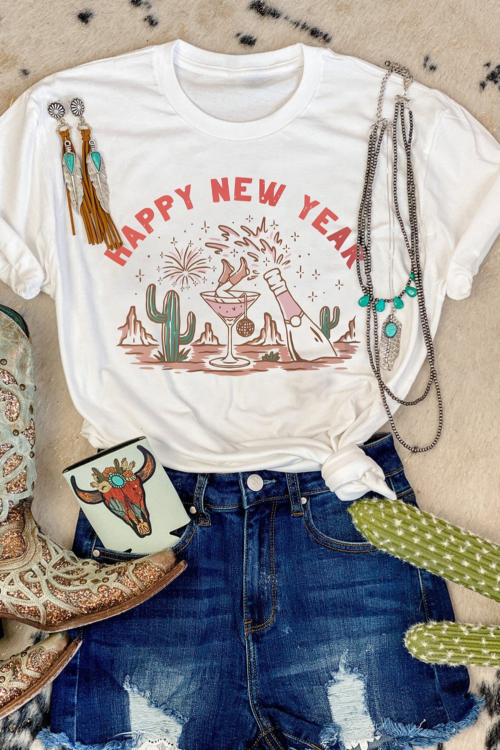 White HAPPY NEW YEAR Letter Graphic Crewneck Tee White HAPPY NEW YEAR Letter Graphic Crewneck Tee White HAPPY NEW YEAR Letter Graphic Crewneck Tee White HAPPY NEW YEAR Letter Graphic Crewneck Tee