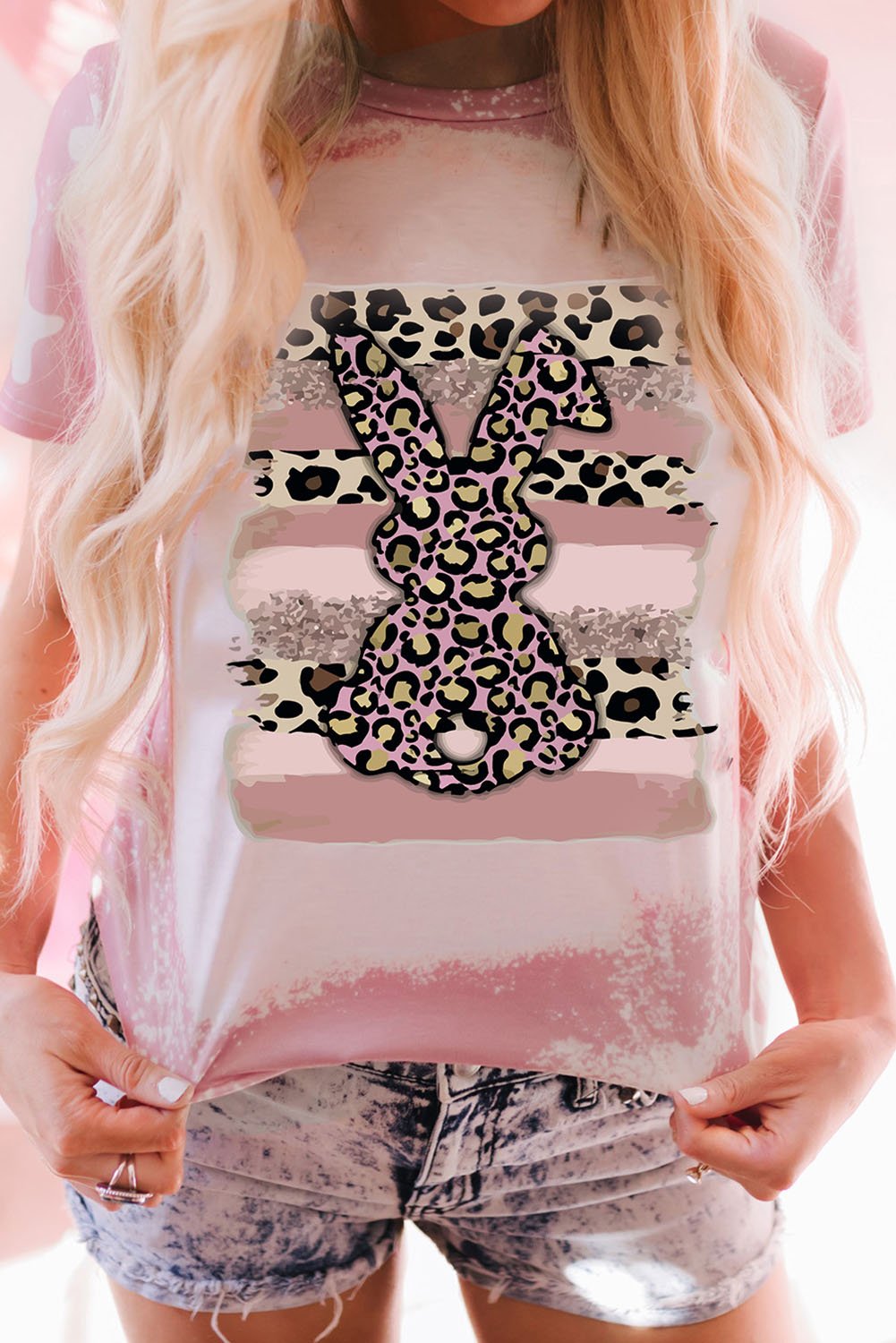 Pink Easter Rabbit Leopard Tie Dye Graphic T Shirt