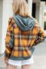 Home > Orange Plaid Patchwork Frayed Trim Snap Button Hooded Jacket