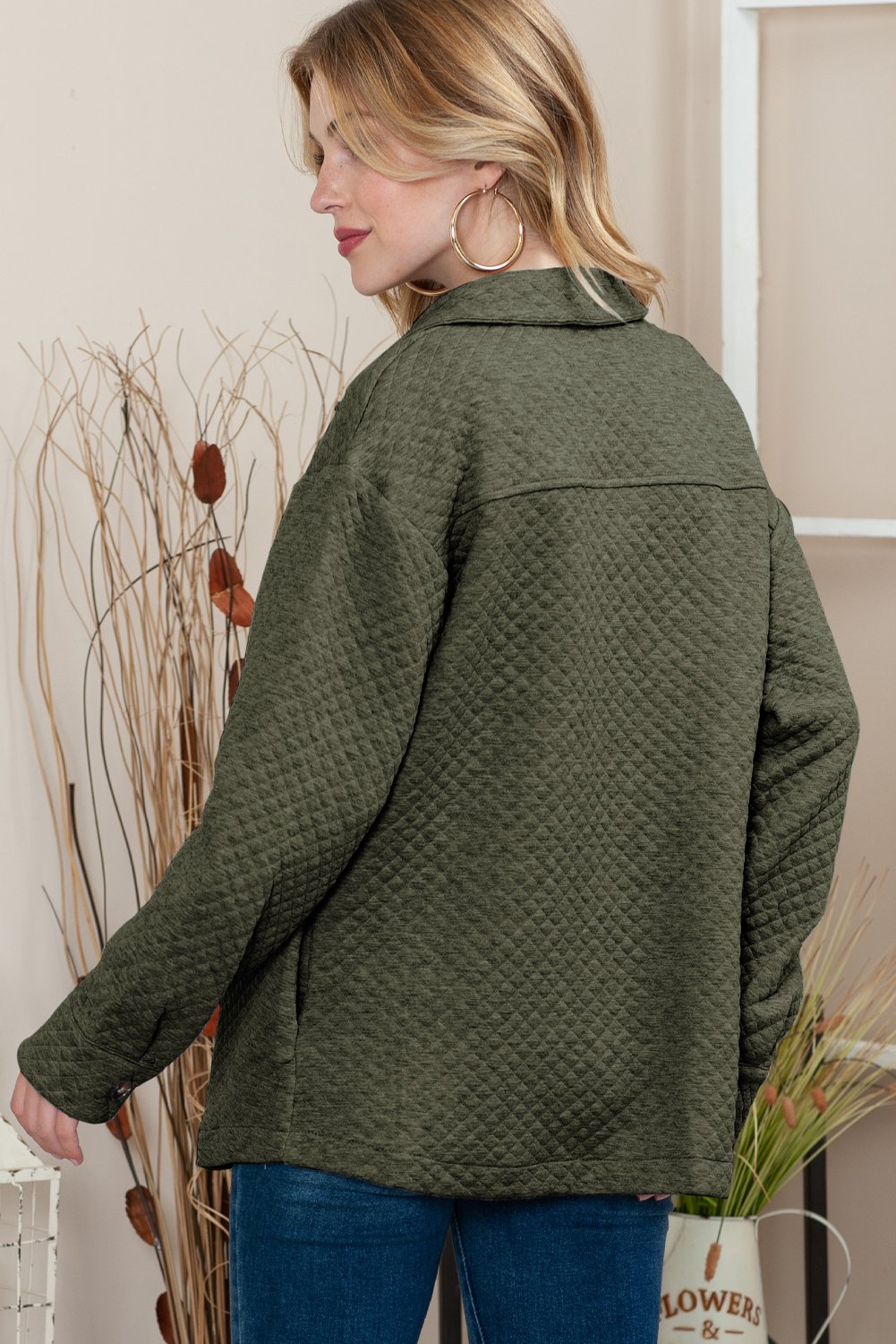 Green Lattice Texture Pockets Button Up Quilted Shacket