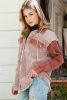 Home > Pink Colorblock Raw Hem Hooded Corduroy Jacket