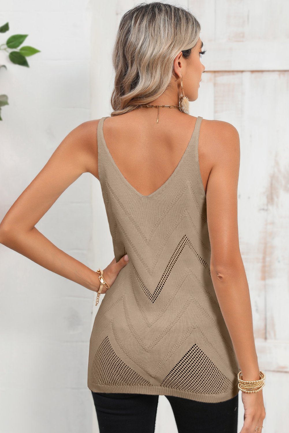 Parchment Chevron Pointelle Knit Cami Top