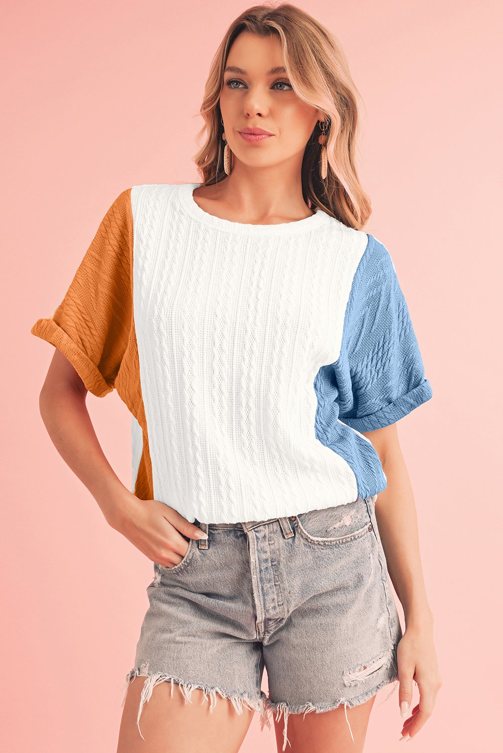 Home > Light Blue Color Block Textured Loose Fit T Shirt