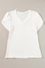White Tulip Sleeve Waffle Knit V Neck T-Shirt