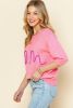 Pink Mom Letter Pattern Short Puff Sleeve Sweater