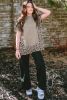 Smoke Gray Leopard Splicing Side Slit Short Sleeve Sweater