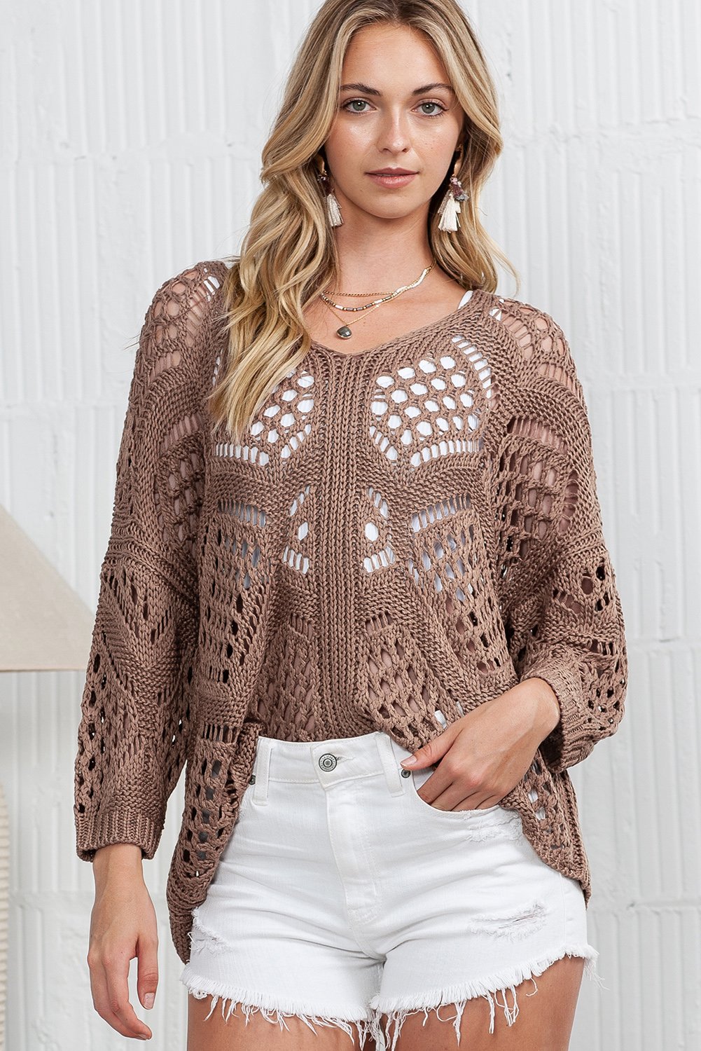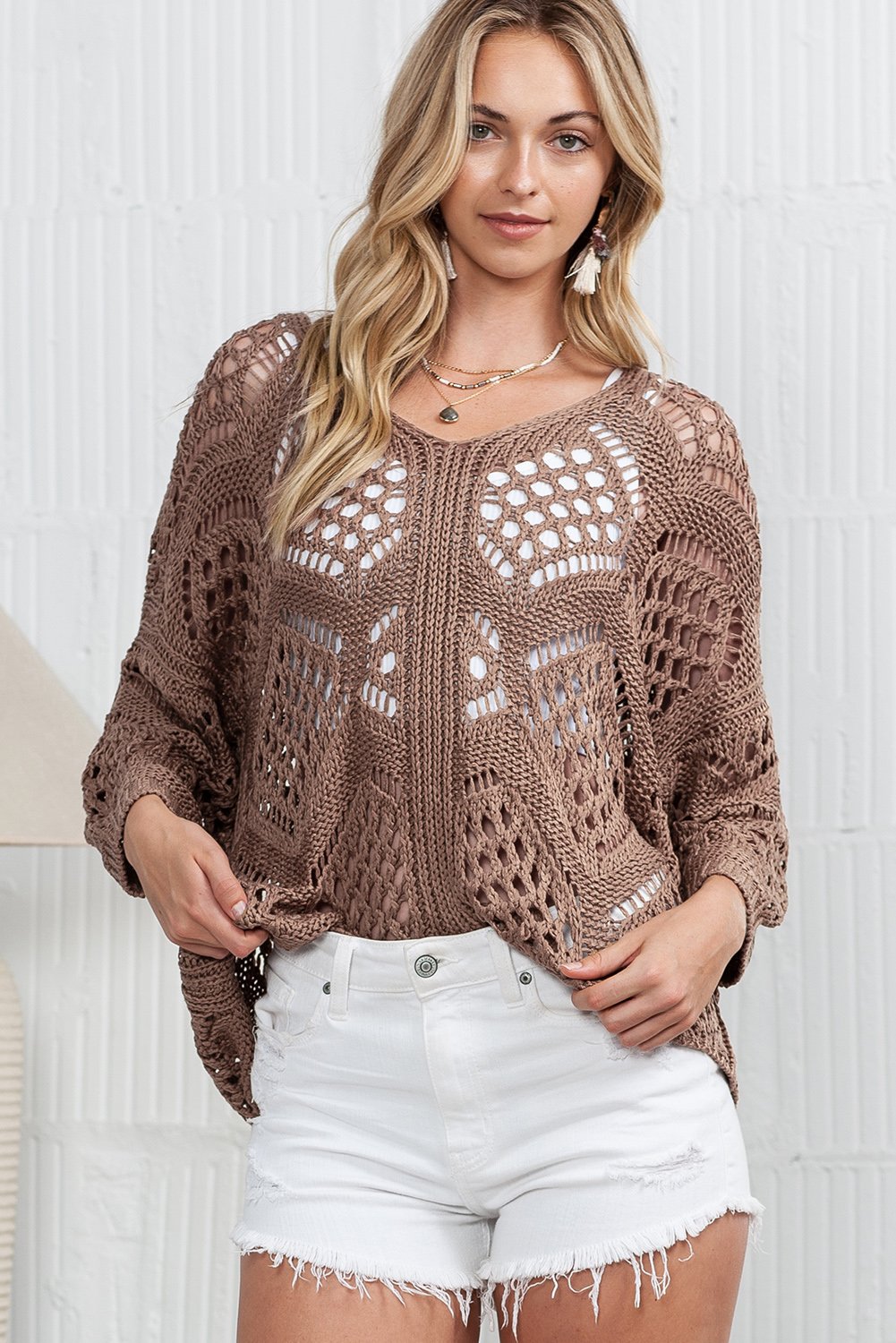 • The hollowed knit design adds a touch of texture and visual interest, making it a unique and eye-catching piece.