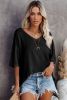 Black Waffle Knit Casual Drop Shoulder Loose Top