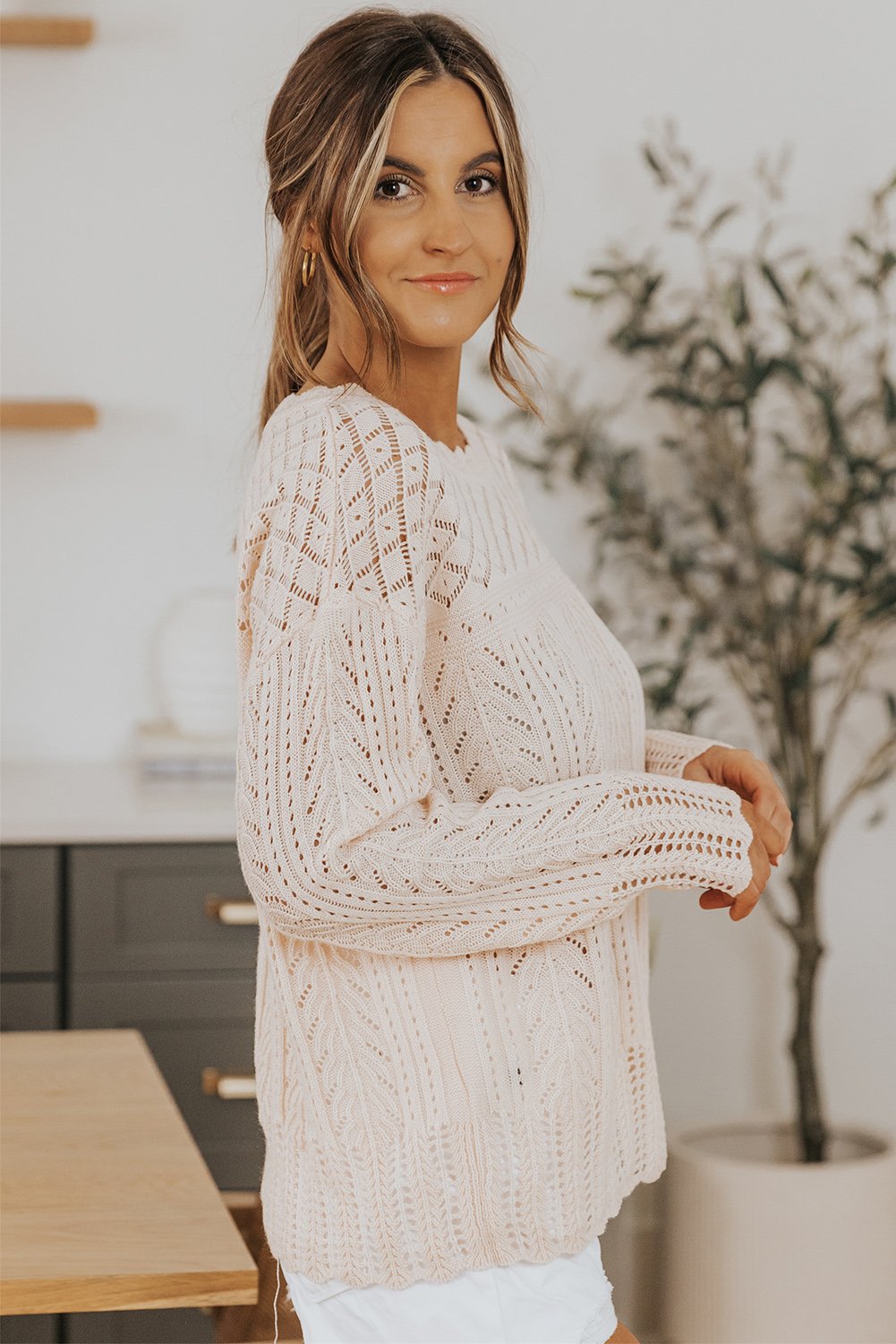 Pink Solid Casual Drop Shoulder Knit Sweater